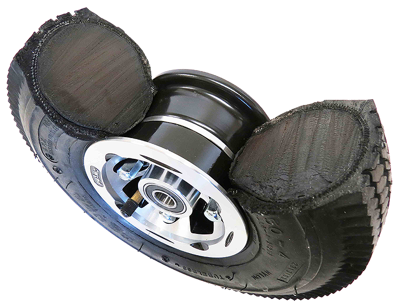 - Foam-filled Tires: These are a hybrid of pneumatic and solid tires featuring a solid rubber core filled with foam. Foam-filled tires combine the shock absorption and ride comfort of pneumatic tires with the durability and puncture resistance of solid tires. They are often used in applications that require a high degree of maneuverability, such as aerial lifts or scissor lifts.
