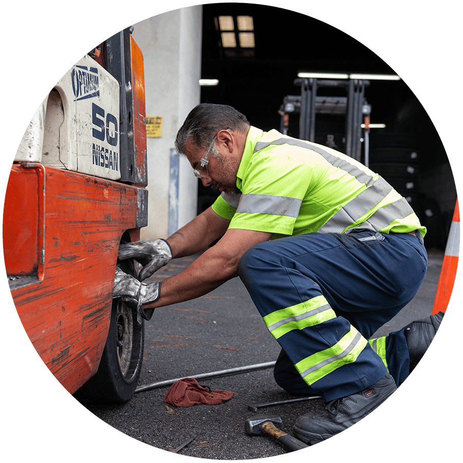 Our mobile press service is designed for your convenience. Scheduling is flexible to accommodate your operational hours, ensuring minimal disruption to your business activities. Our team arrives on-site, performs the necessary tire pressing, and gets your forklifts back in action promptly.